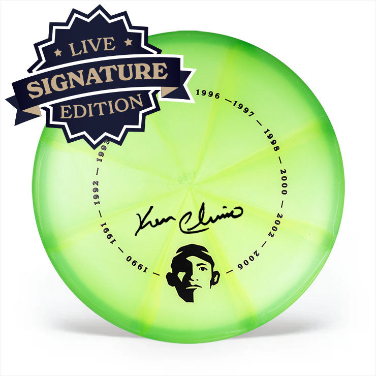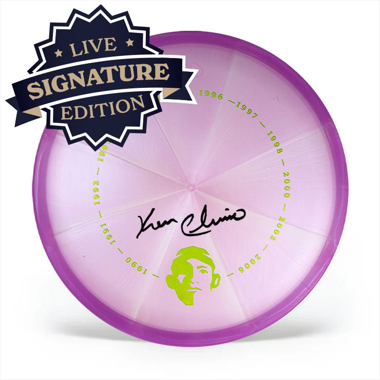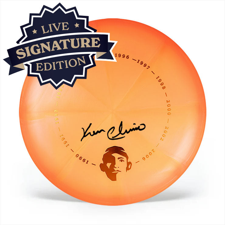 This Test Blend Champ was hand-signed by Ken Climo during an exclusive signing session. The disc has the Winner's Circle stamp—perfect for display, collecting, or throwing like a Champ.