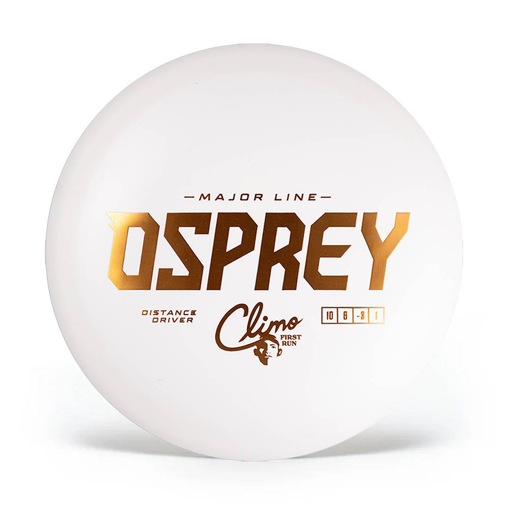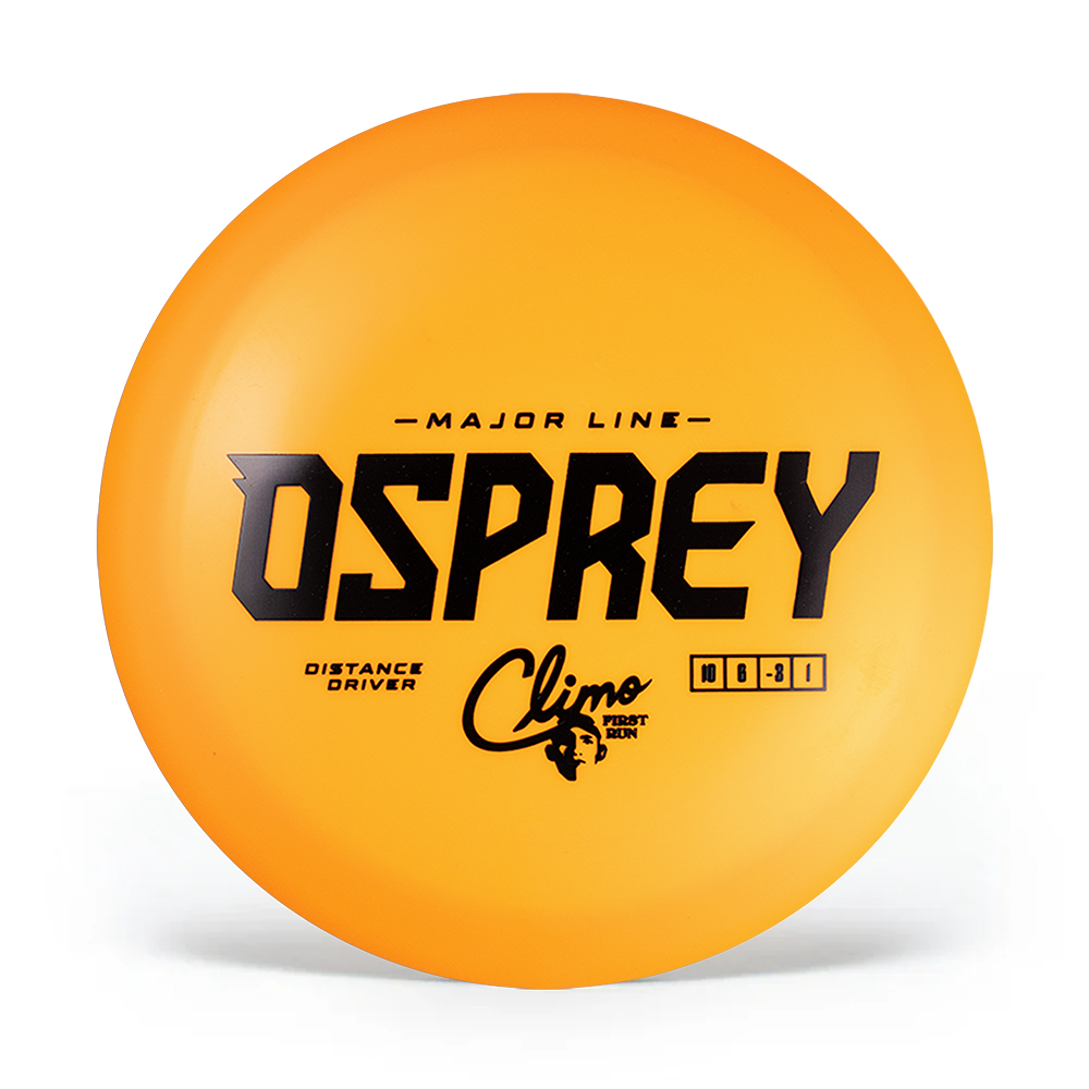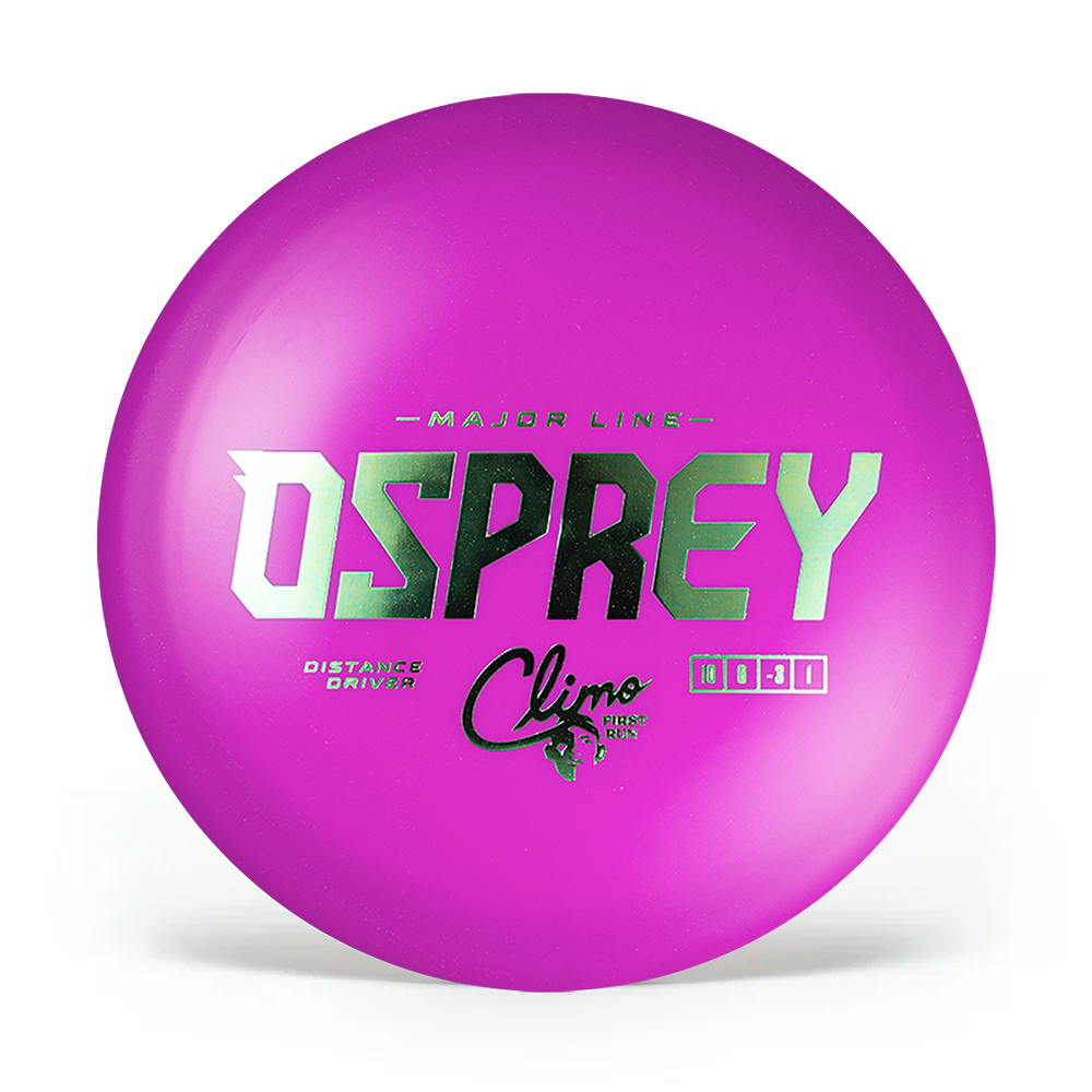 Soar through the course with the Climo Disc Golf Osprey. Sleek, fast, and graceful like its namesake, the Osprey is perfect for players seeking easy distance with a touch of finesse. This 10-speed driver is versatile enough to suit any skill level. Novice and intermediate golfers will love its controllable understability, which makes it easy to achieve long, smooth turnover shots and maximum distance. Meanwhile, advanced and pro-level players will appreciate the Osprey's ability to carve technical lines, deliver massive hyzer-flips, and glide through the air with precision, making it an indispensable tool for attacking the fairway.