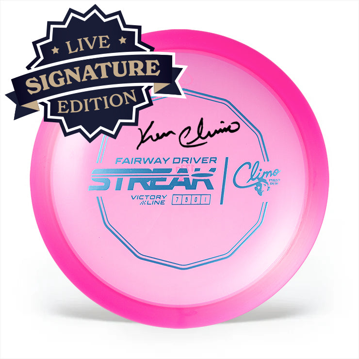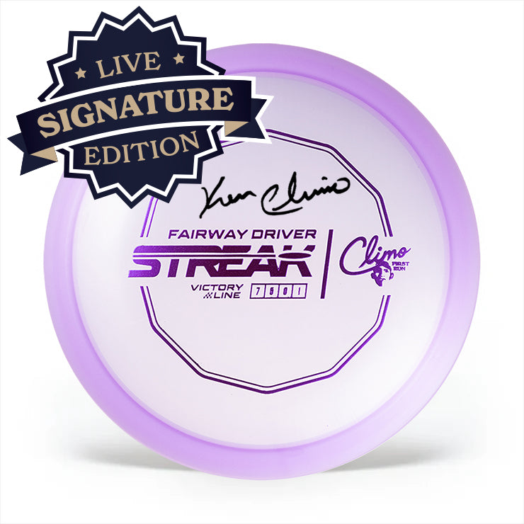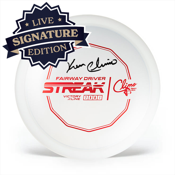 The Climo Streak is named in honor of that iconic run. It also marks the debut of the first fairway driver in the Climo Disc Golf lineup. The Streak is built for players chasing that same level of consistency Ken Climo played with. It's straight, reliable and repeatable flight is exactly what every players' bag needs. Throw like The Champ and start a Streak of your own.