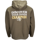 This is the Climo Signature Hoodie. Rep the greatest of all-time on and off the course and stay warm while doing it. Ken Climo signature on front left chest and Discover Your Inner Champion dual color print on the back.