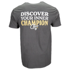 This is the Climo Signature Tee. Rep the greatest of all-time on or off the course. Ken Climo signature on front left chest and Discover Your Inner Champion dual color print on the back.